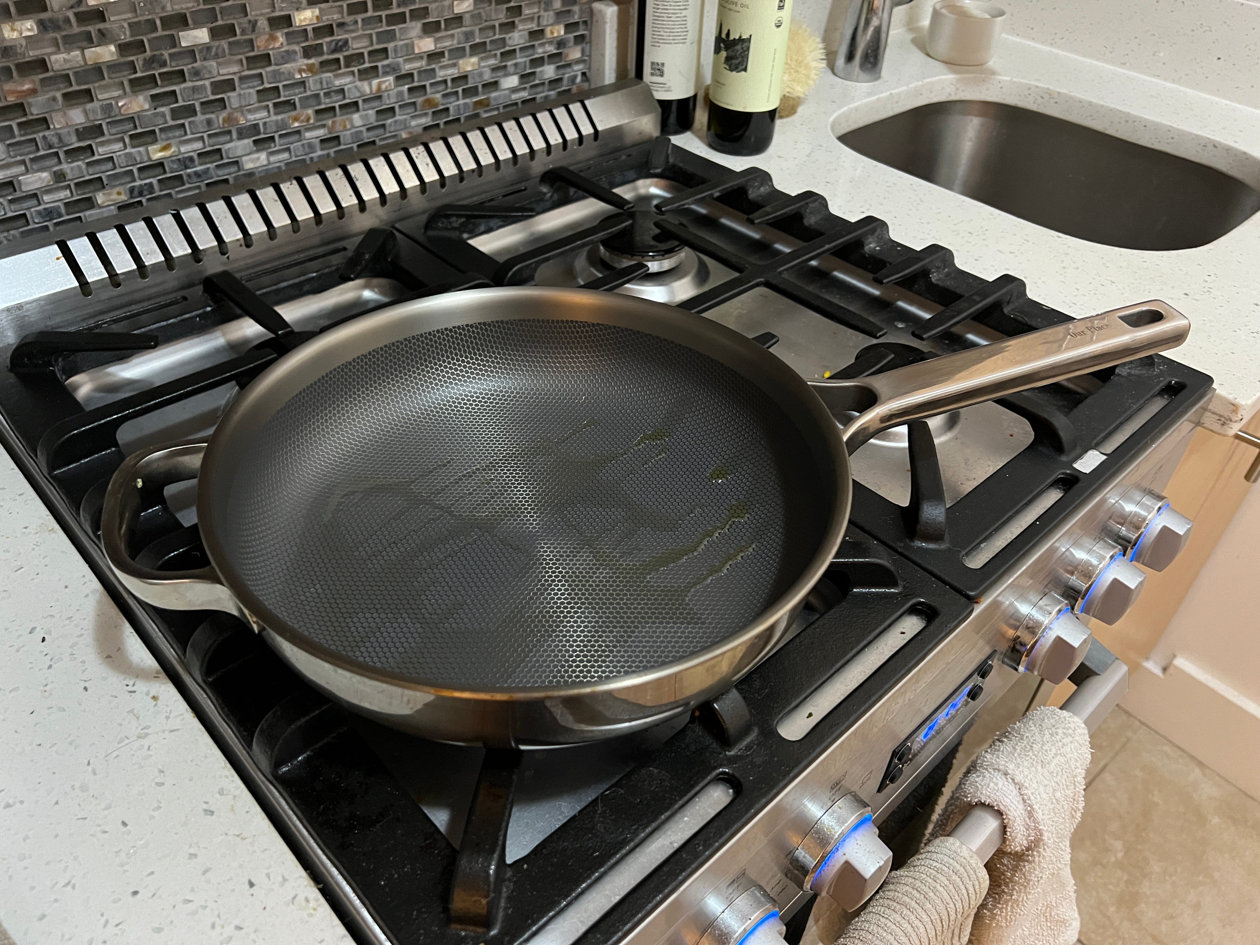 The interior is entirely titanium— meaning there’s no chemical non-stick coating— but it’s designed with small grooves that help to give it some really nice non-stick properties. The best part is that it has an incredibly high heat tolerance, so you don’t have to baby it like you do with ceramic. This has become my go-to pan for things like stir-fries, scrambled eggs, sausages, sauces, steaming, and a bunch more. I use it pretty much daily at this point.