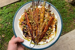 Roasted Carrots with Yogurt, Pistachios, and Balsamic Drizzle